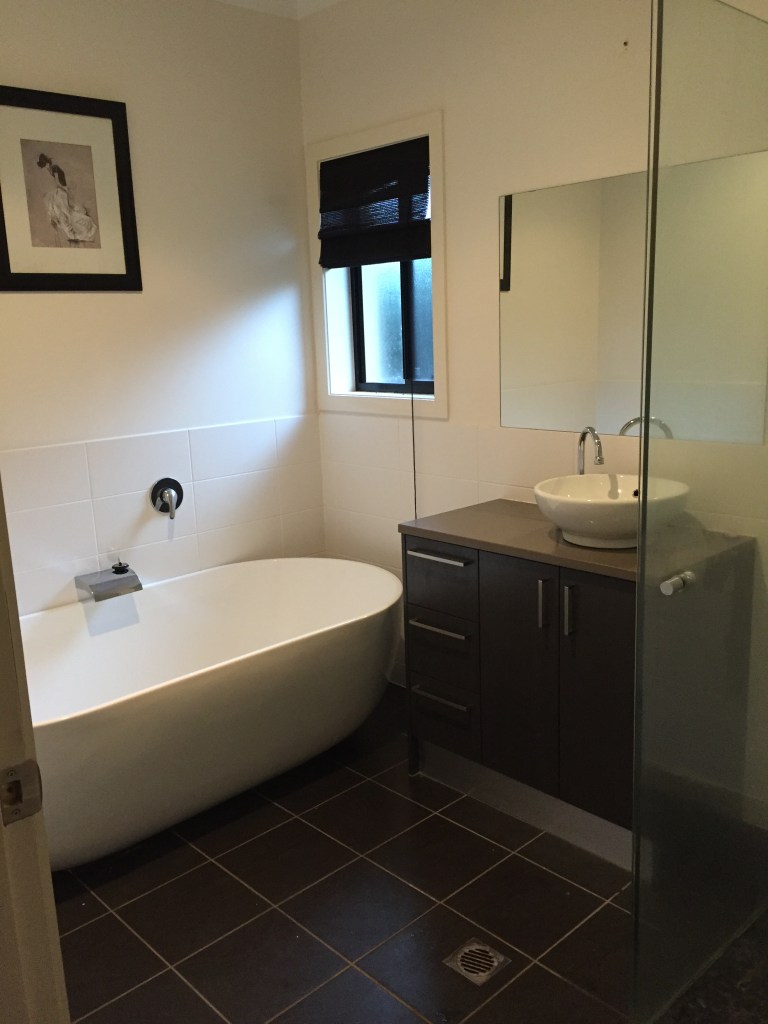 The bathroom was pretty boring, very white and lacked any form of style. I love the large freestanding bath and I wanted a design that would give the feeling of being in a tropical spa.
